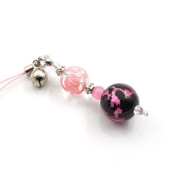 可愛らしいピンク彫りの玄武と夜桜ピンクとんぼ玉のストラップ。